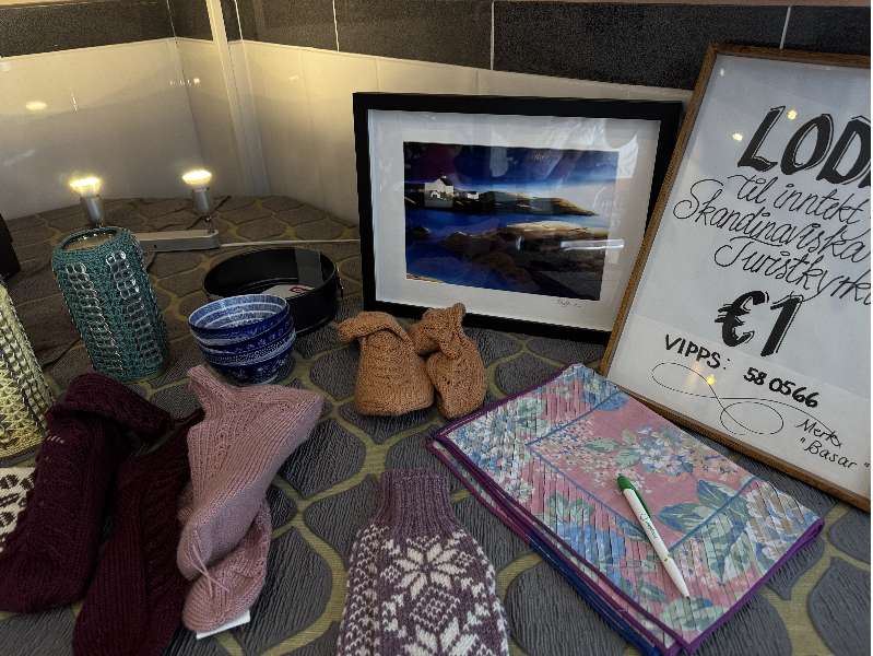 til inntekt for turistkirken. Det blir strikket, sydd og heklet mye på håndarbeidskafé, og mange kommer med gevinster som er laget hjemme i Norge. Noen kjøpte gevinster er det også. Tusen takk til alle som bidrar!