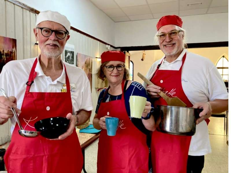 Lyckad säsongspremiär för sopplunchen. Kocken Torbjörns ärtsoppa blev mycket uppskattad.