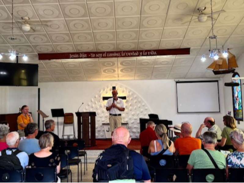 Varje måndag och onsdag avslutar guiderna från Ving sin stadsvandring hos oss i Turistkyrkan. Storleken på turistgrupperna varierar från 15 till 35. Cafeét är öppet och några stannar för att ta en fika..