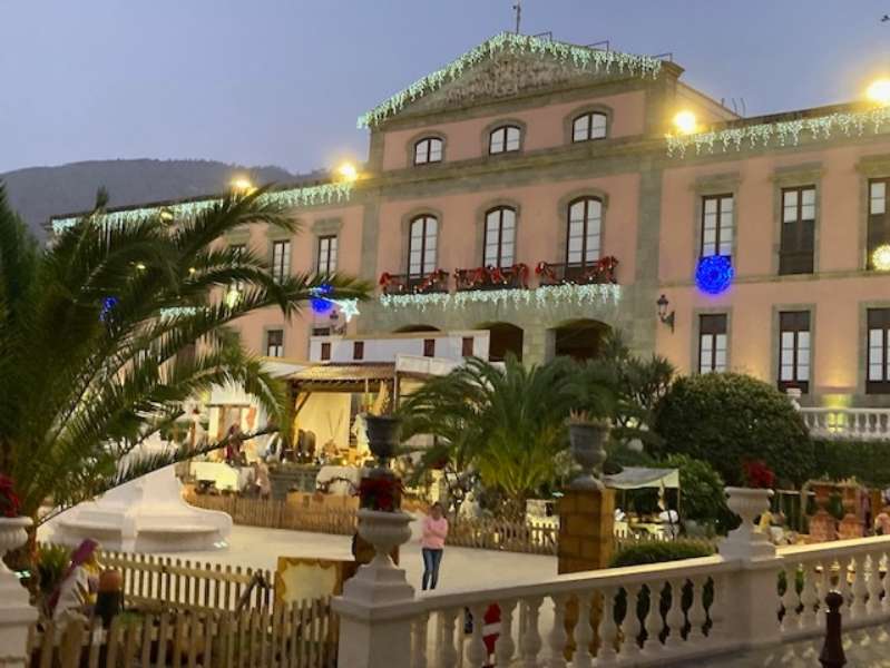 En eftermiddag i advent vandrade vi genom La Orotava. Staden är känd för sin stora julkrubba framför rådhuset, där också miljöerna är uppbyggda i naturlig storlek. Vi kom till krubban vid skymningen när julbelysningen just tänts.Mycket vackert och stämningsfullt.