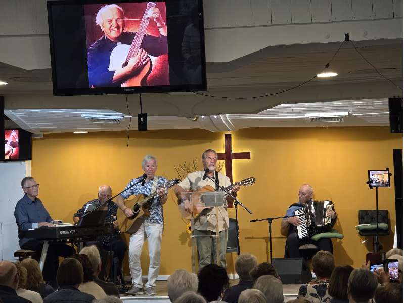 Turistkirkekvelden ble avsluttet med sanger av Åge Samuelsen av Arvid Nymoen, Håkon Fagervik og Jan Halvorsen.